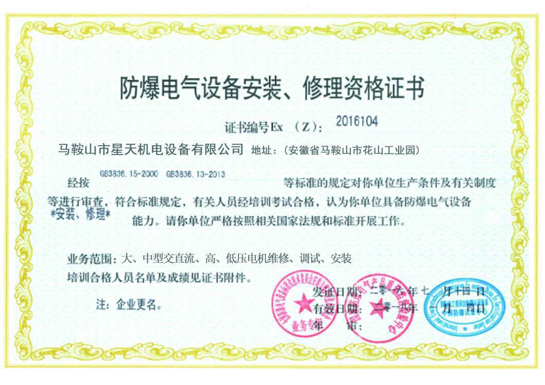 防爆電氣設(shè)備安裝修理資格證書